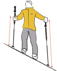 When heading up hills, you may want to adjust your pole length so it is slightly shorter, and similarly, make it longer for when you are descending downhill.