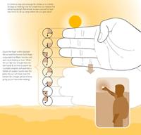 Here’s a nifty trick they don’t teach you in school. Next time you want to estimate how many hours of sunlight is left, simply extend your arm and align the top of your index finger with the bottom of the sun. Each finger between the sun and the horizon indicates about 15 minutes of daylight. Of course, this is a guide only and you may find that depending on your location in the world, this technique may or may not apply. Visiting Alaska? It’s not likely this technique will work during summer when there is sunlight for almost 24 hours in the day! Additionally, the closer you get to the equator, the faster the sun will set based on the finger measurements.